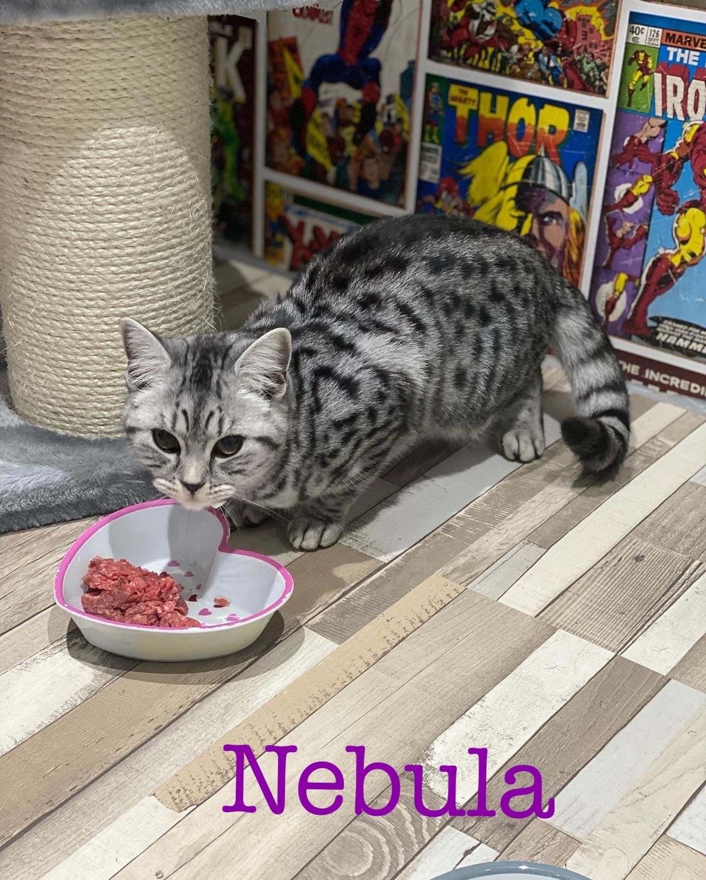 Nebula is my new Silver Spotted Tabby and is GCCF registered active female, she was born on the June 2021. She is a stunning example of my new Silver line and sister to Gamora. She will have her first litter in 2022 with Venom for stunning Silvers!!